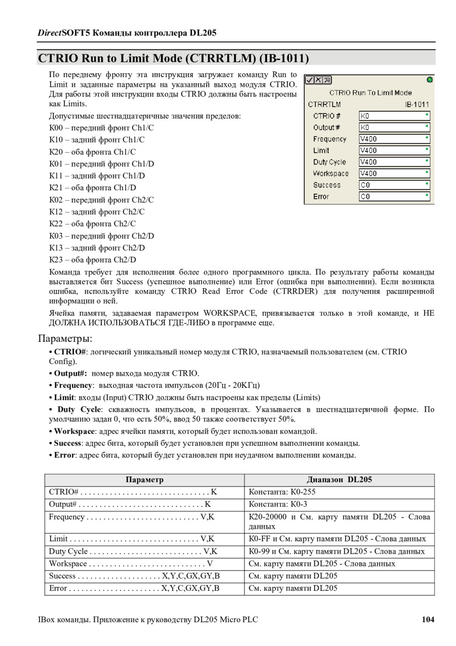 DirectLogic DL205 Команды IBox/Приложение к руководству пользователя на русском (DL205-IBOX-S-RUS) - просмотр