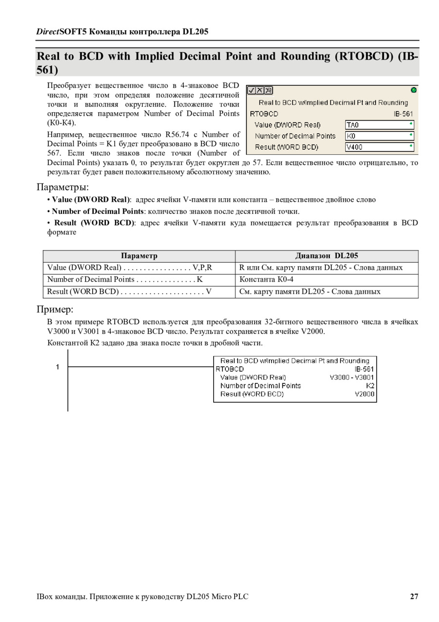DirectLogic DL205 Команды IBox/Приложение к руководству пользователя на русском (DL205-IBOX-S-RUS) - просмотр