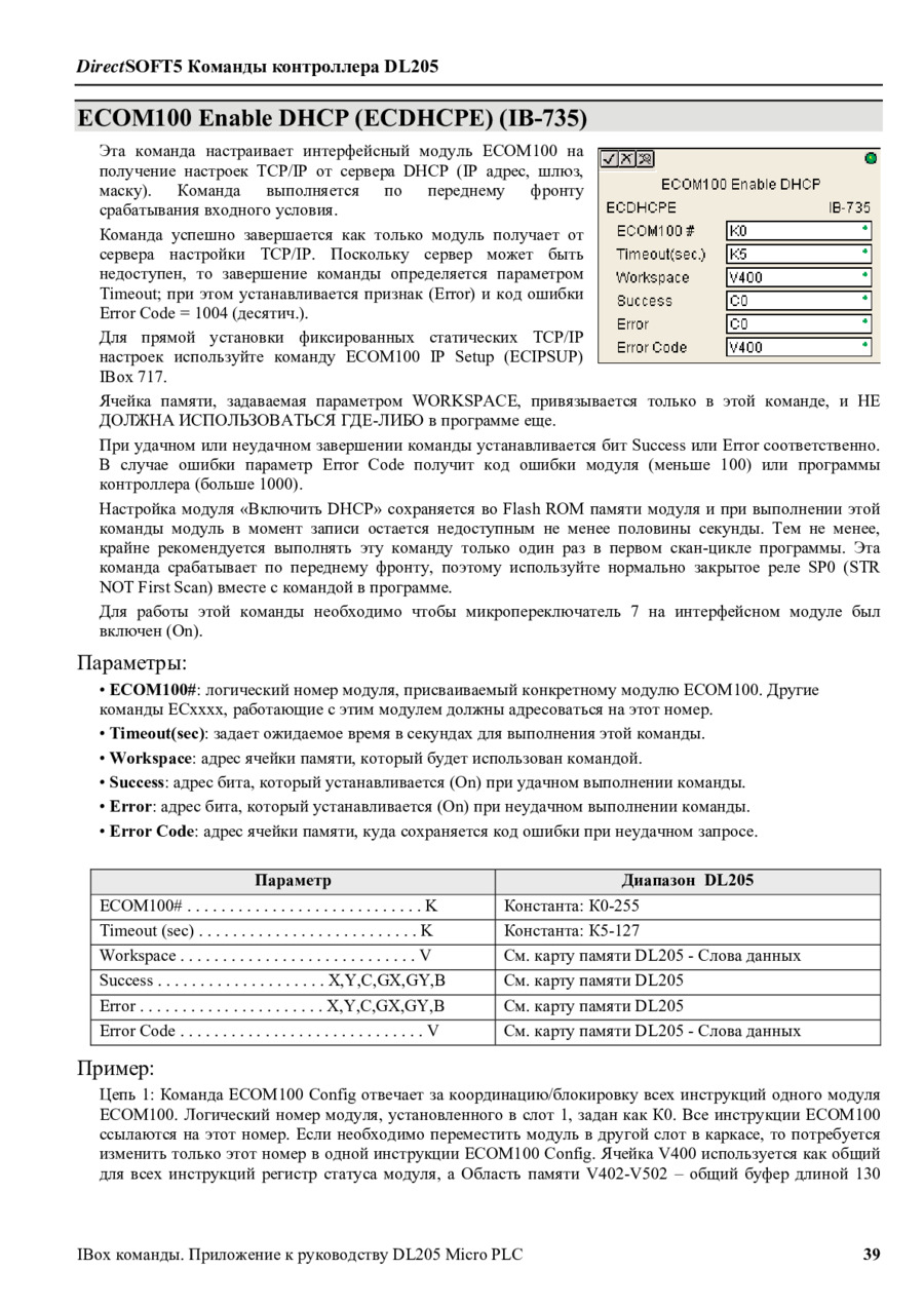 DirectLogic DL205 Команды IBox/Приложение к руководству пользователя на русском (DL205-IBOX-S-RUS) - просмотр