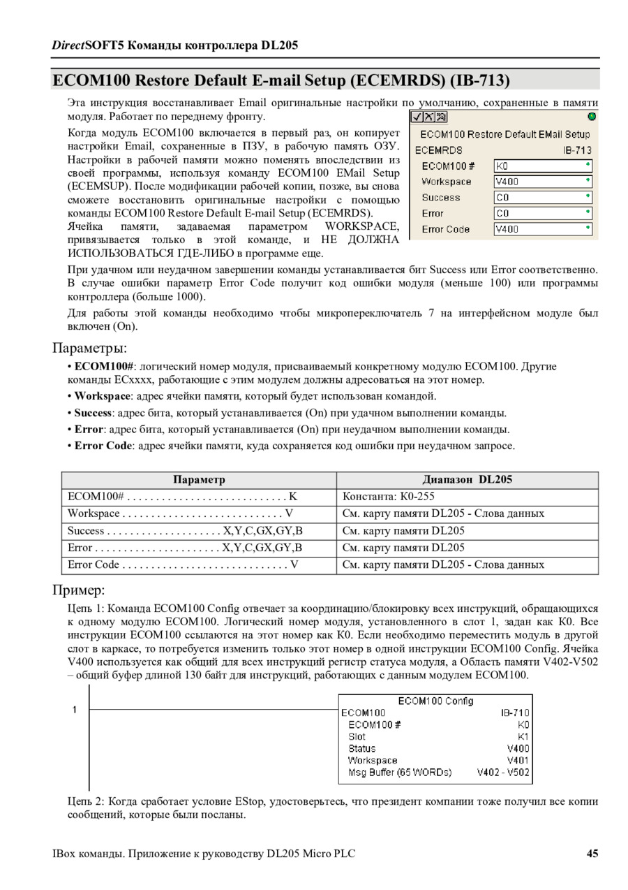 DirectLogic DL205 Команды IBox/Приложение к руководству пользователя на русском (DL205-IBOX-S-RUS) - просмотр