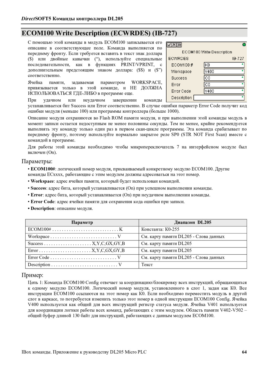DirectLogic DL205 Команды IBox/Приложение к руководству пользователя на русском (DL205-IBOX-S-RUS) - просмотр