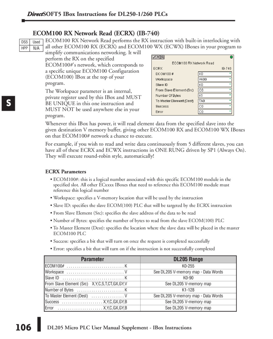 DirectLogic DL205 Команды IBox/Приложение к руководству пользователя на английском (DL205-IBOX-S) - просмотр