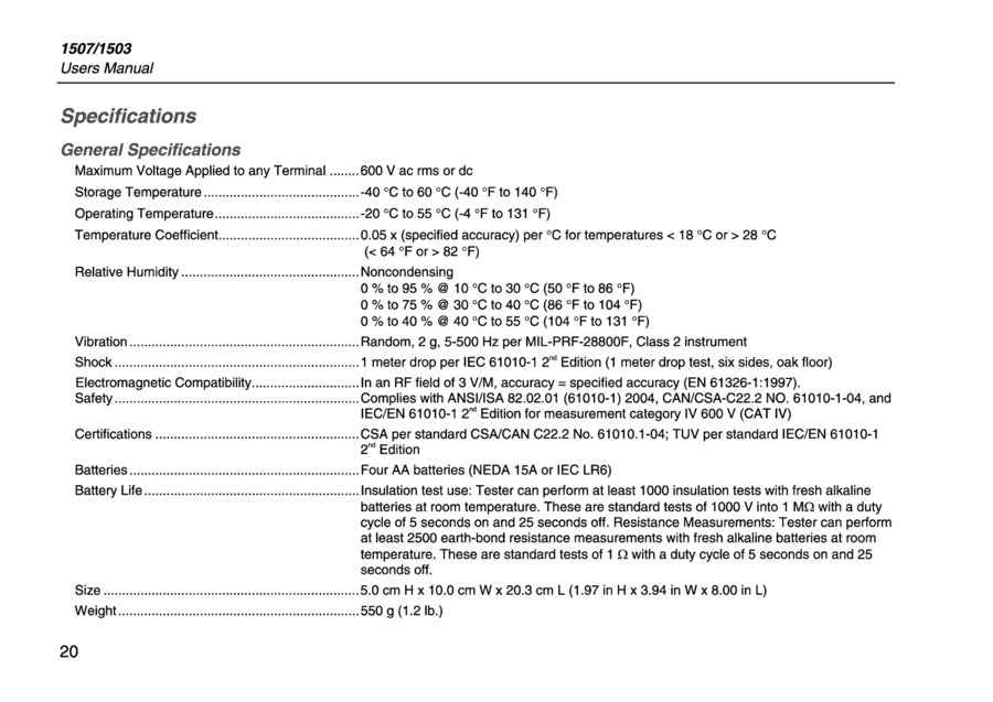 Fluke 1507/1503 Руководство пользователя на английском 2005 г. - просмотр
