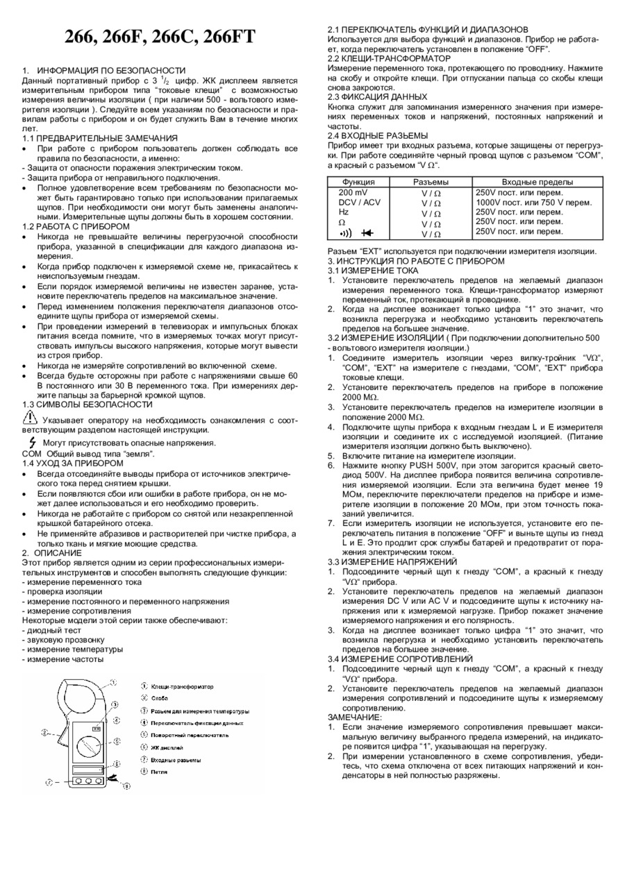 DT266C Инструкция TEK DT 266, 266F, 266C, 266FT - просмотр