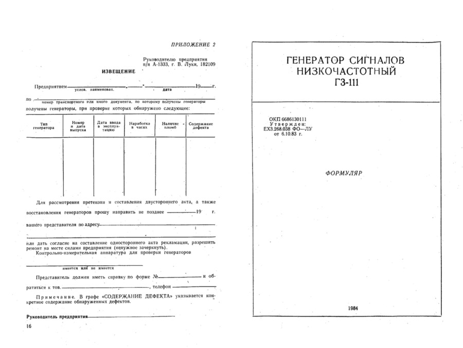Г3-111 Формуляр - просмотр
